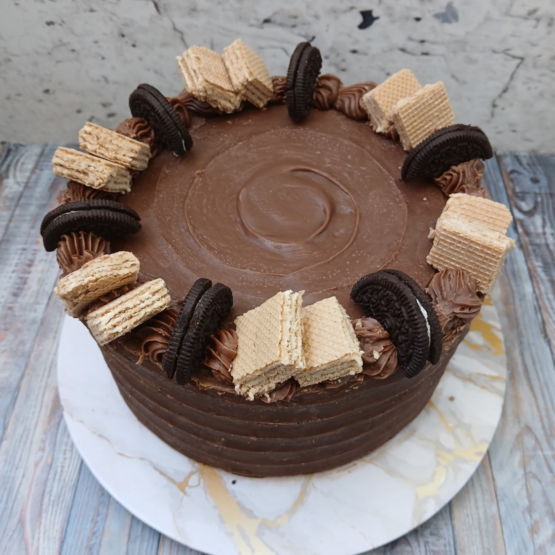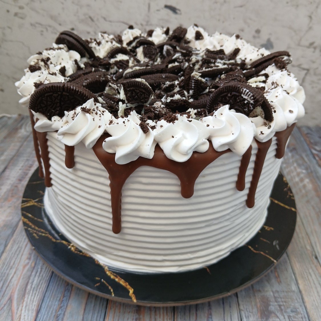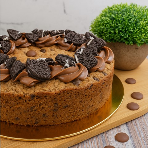 Pastel de galleta de vainilla con trozos de Oreo y chocolate con leche, relleno con Nutella y más trozos de Oreo. Decorado con estilo y listo para personalizar. ¡Un clásico reinventado para celebrar en grande!
